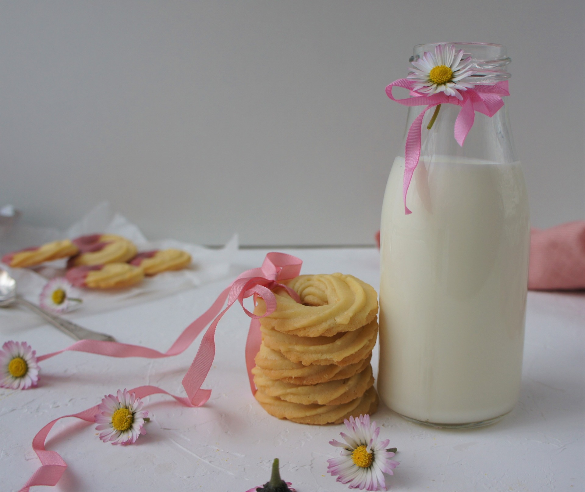 V míse si vyšlehám změklé máslo s moučkovým cukrem do světlé pěny. Přidám vejce a dobře smíchám. Přisypu prosetou mouku se špetkou soli. Jakmile se vše spojilo, přendám do cukrářského sáčku s ozdobnou špičkou ( Wilton 1 M ) a stříkám na plech, na kterém mám papír na pečení, malé věnečky. Vložím do rozpálené trouby a peču 12 minut. Po upečení přendám na chladící mřížku. Dobrou chuť. M